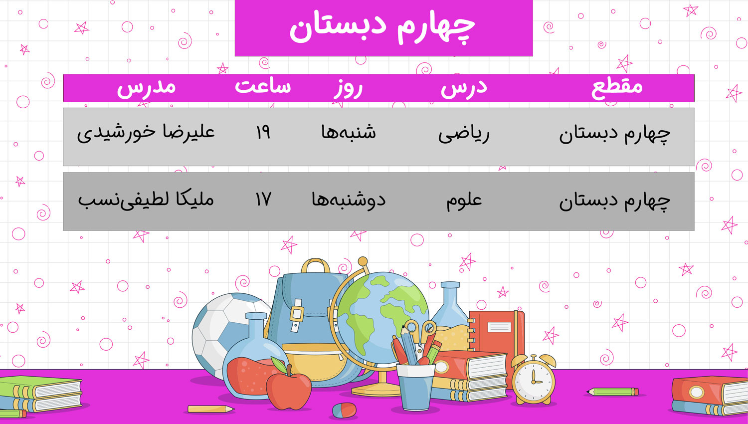 جلسات دوره فصل 1 - فصل 1 مشاهده بستن جلسه 1 - علوم - 23 تیرماه 50 دقیقه جلسه 2 - علوم - 30 تیرماه 52 دقیقه جلسه 3 - علوم - 13 مرداد ماه 52 دقیقه جلسه 4 - علوم - 20 مرداد جلسه 5 - علوم - 27 مرداد جلسه 6 - علوم - 3 شهریور جلسه 7 - علوم - 17 شهریور