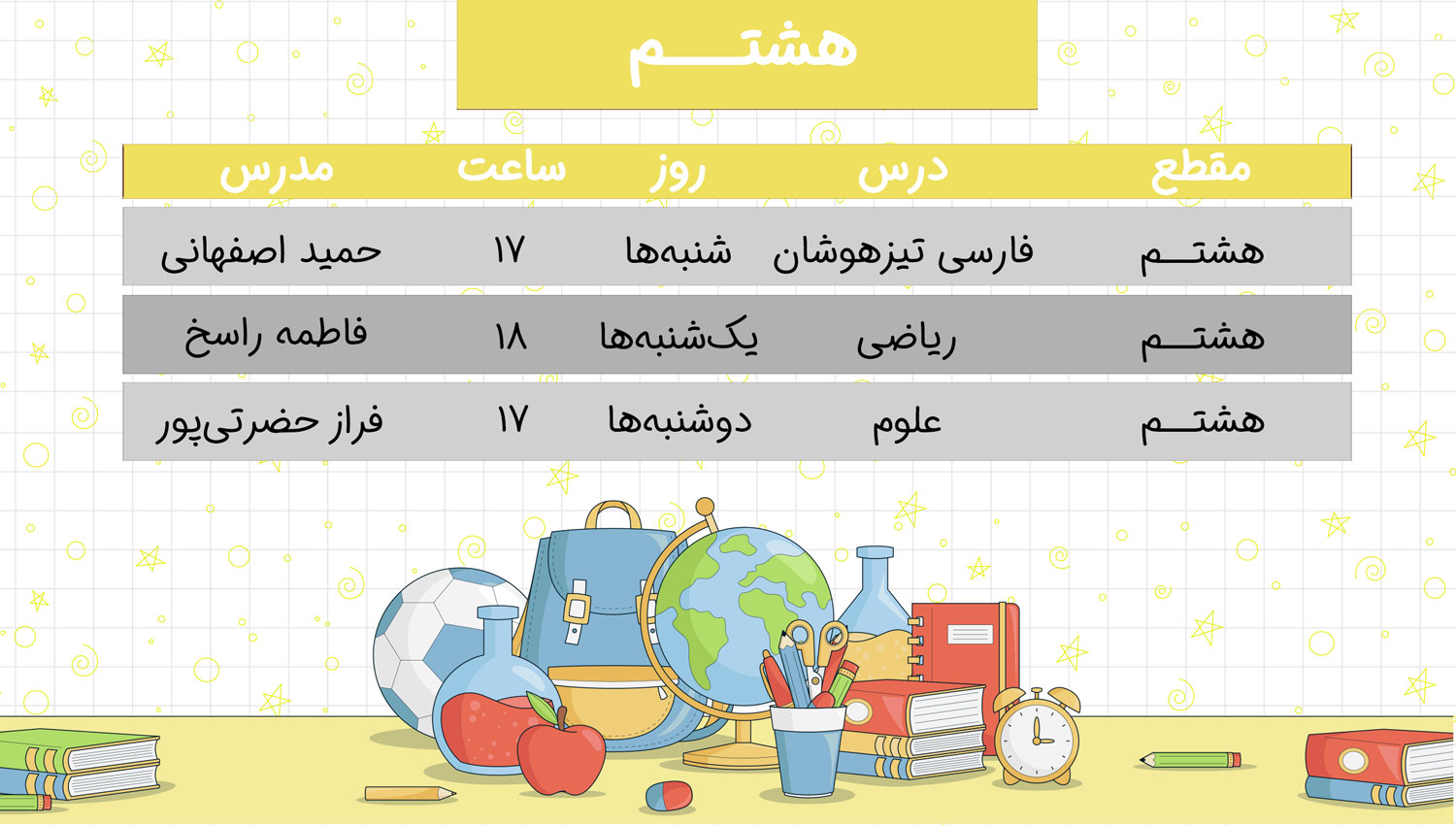 جلسات دوره فصل 1 - فصل 1 مشاهده بستن جلسه 1 - فارسی - 21 تیرماه 46 دقیقه جلسه 2 - فارسی تیزهوشان - 25 مرداد جلسه 2 - فارسی تیزهوشان _ 25 مرداد جلسه 3 - فارسی تیزهوشان - 8 شهریور جلسه 3 - فارسی تیزهوشان - 8 شهریور جلسه 4 - فارسی تیزهوشان - 15 شهریور جلسه 4 - فارسی تیزهوشان - 15 شهریور