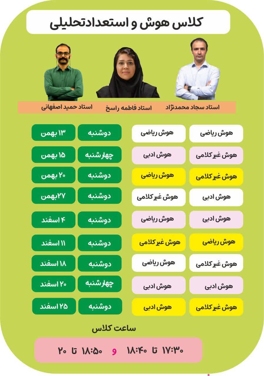 با توجه به آزمون تیزهوشان و اهمیت بخش هوش و استعداد تحلیلی برای موفقیت شما برنامه داریم.